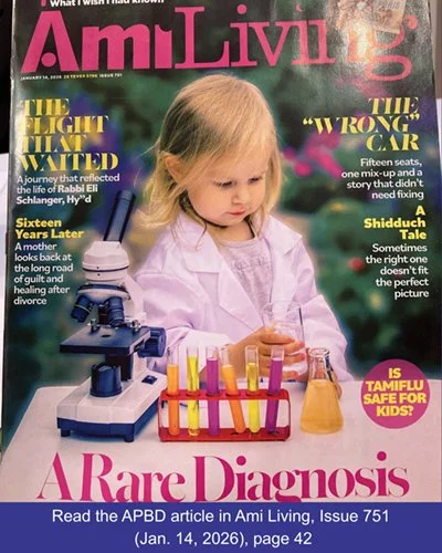 Editor’s Note: We are thankful to the writers and editors at “Ami Magazine” for putting the spotlight on APBD with Barbara’s personal narrative. Understanding the rare disease journey, recognizing the hallmarks of APBD, and connecting individuals and families affected with crucial resources are important aspects of this work to make APBD treatments a reality. Our thanks also to Barbara for stepping out and sharing her journey!