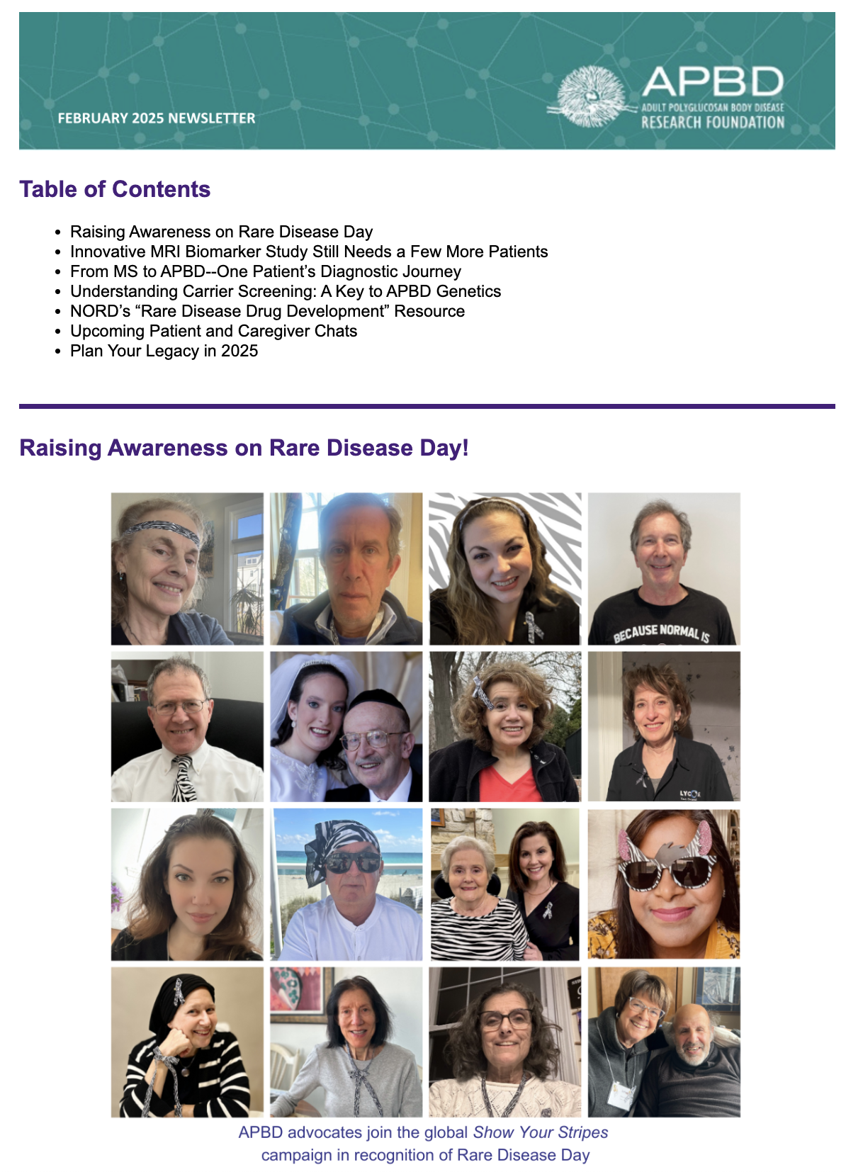 February 2025 Newsletter — Recognizing Rare Disease Day; biomarker studies; and more!; …